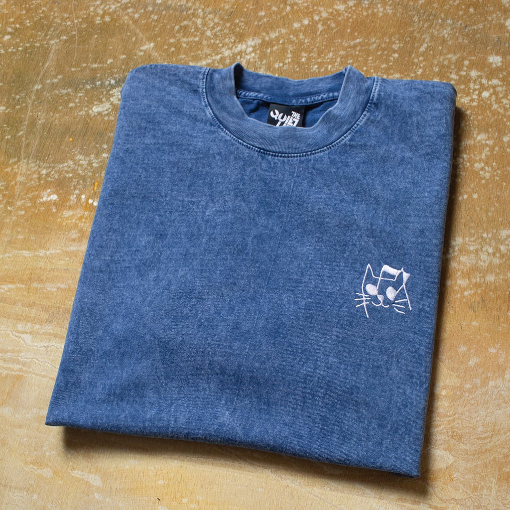 Music Cat Embroidered T - Mineral Wash Blue - FA25